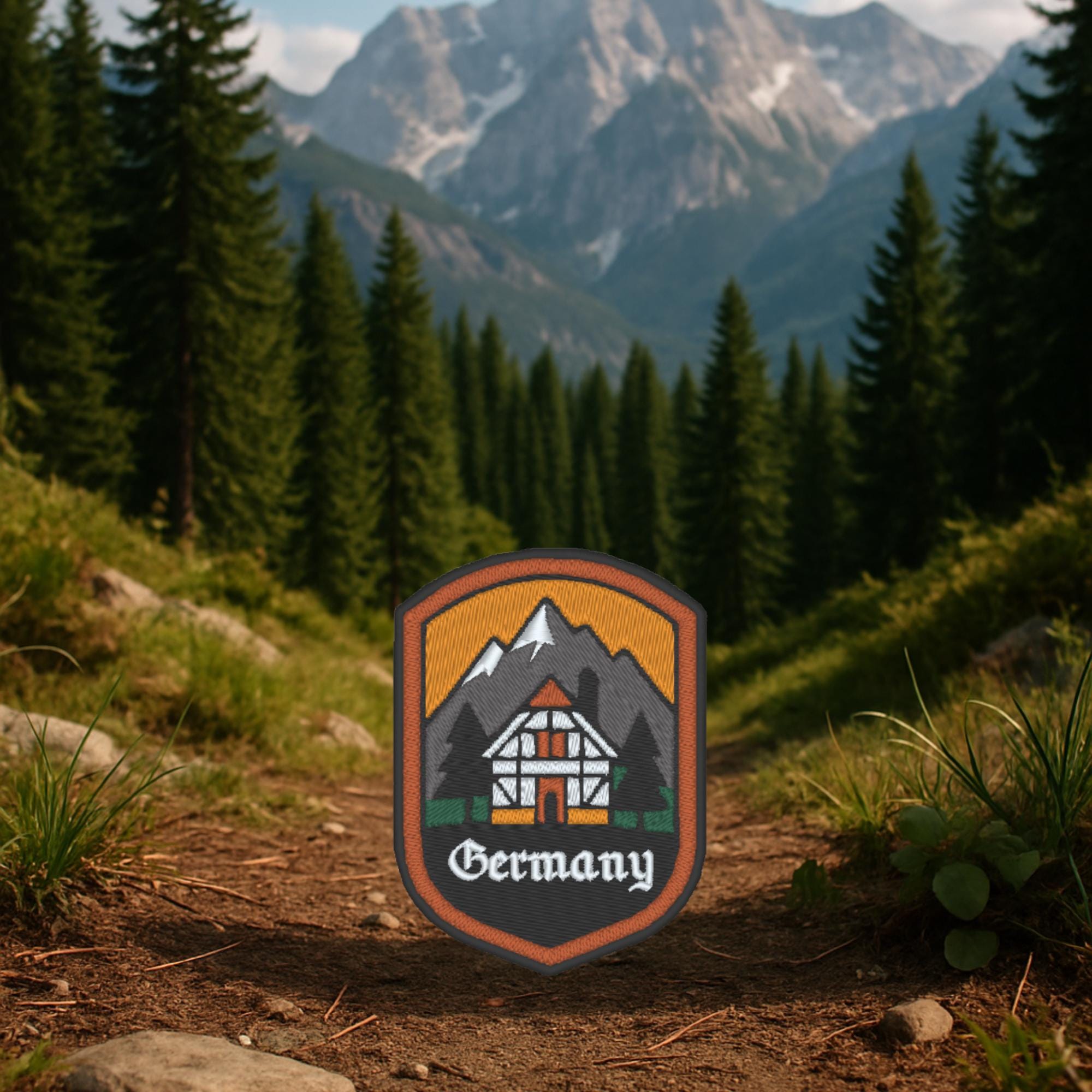 Germany Travel Patch – Embroidered Souvenir Badge, Mountain & House