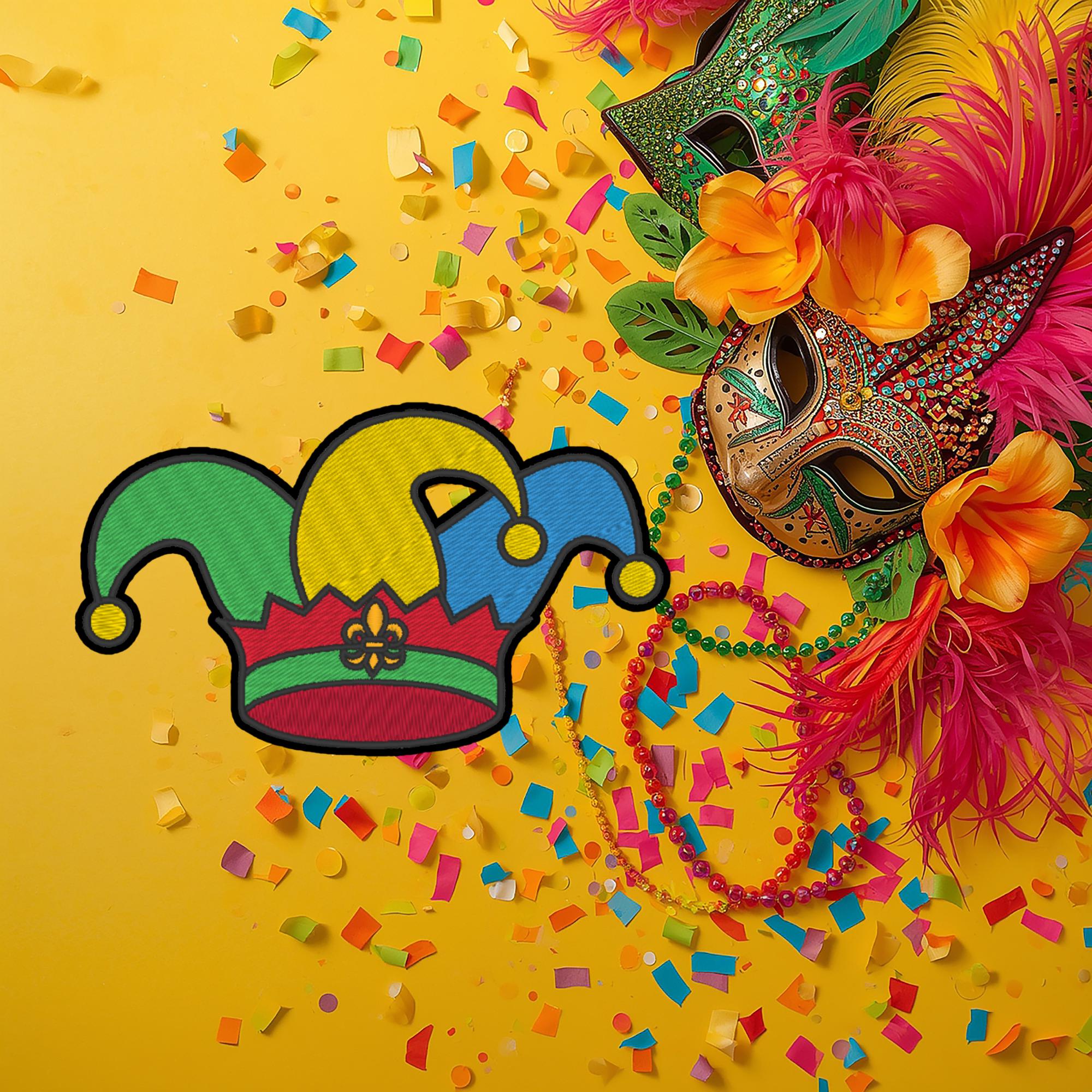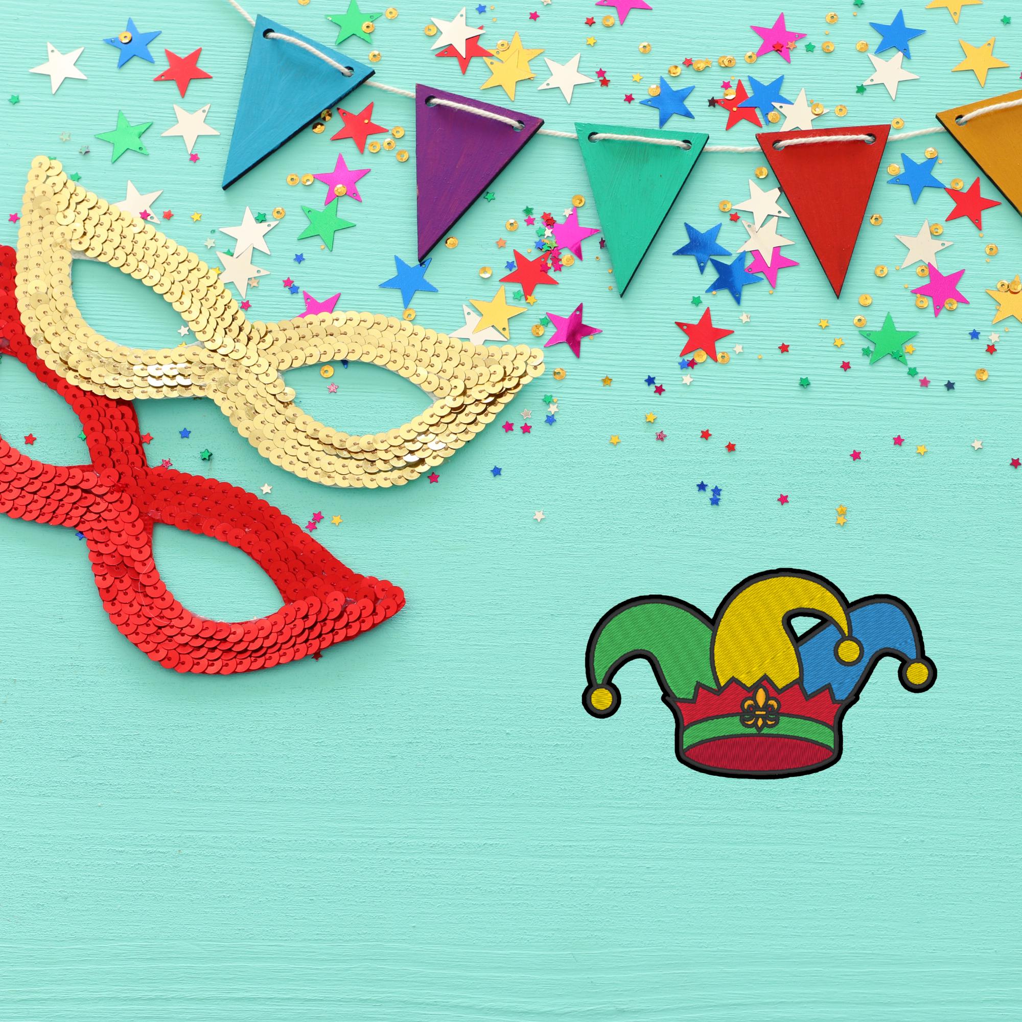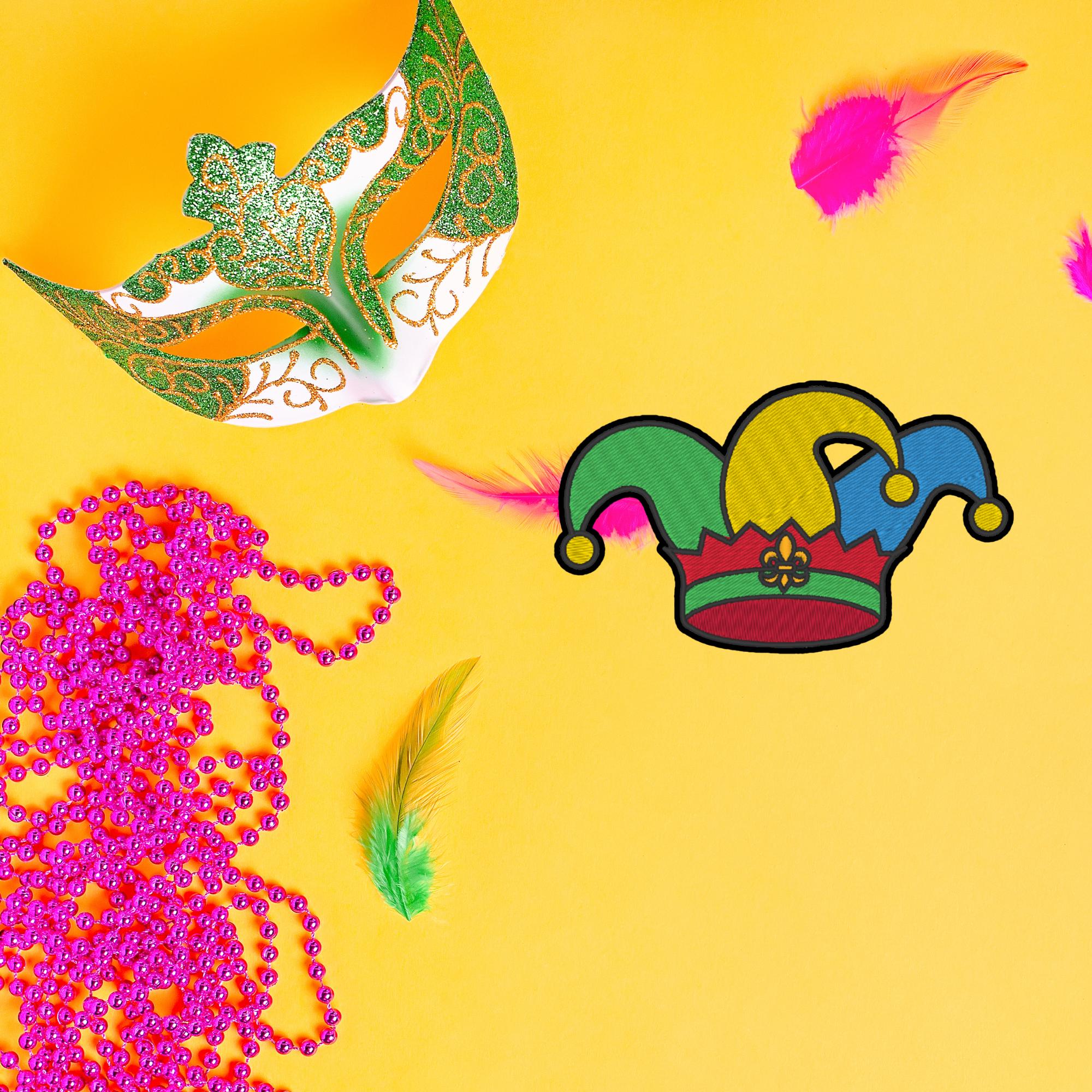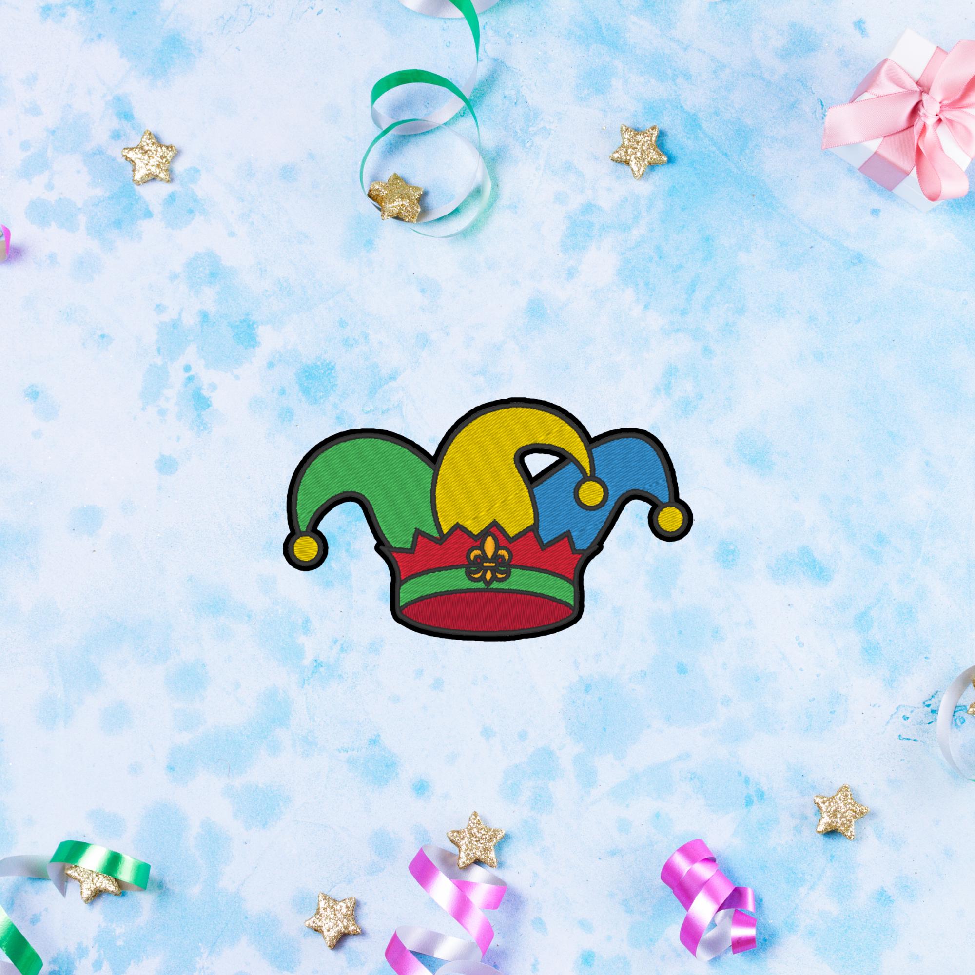 Fasching Patch Jester Hat Embroidery Applique, Carnival Costume Accessory, Festive, Mardi Gras