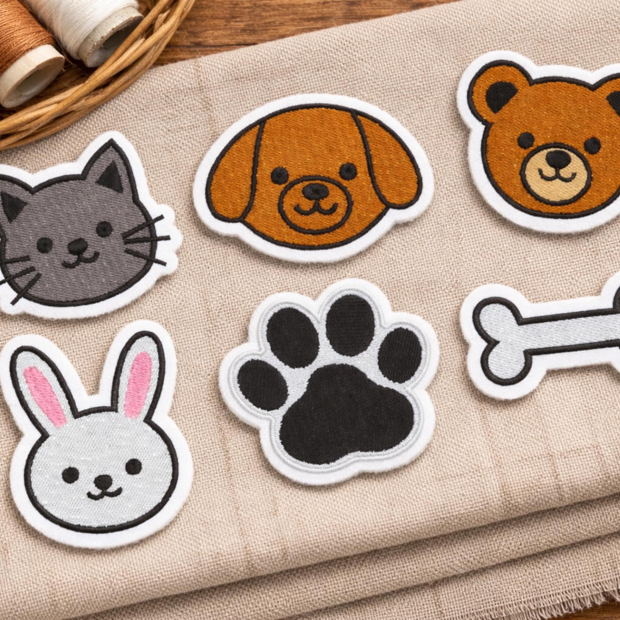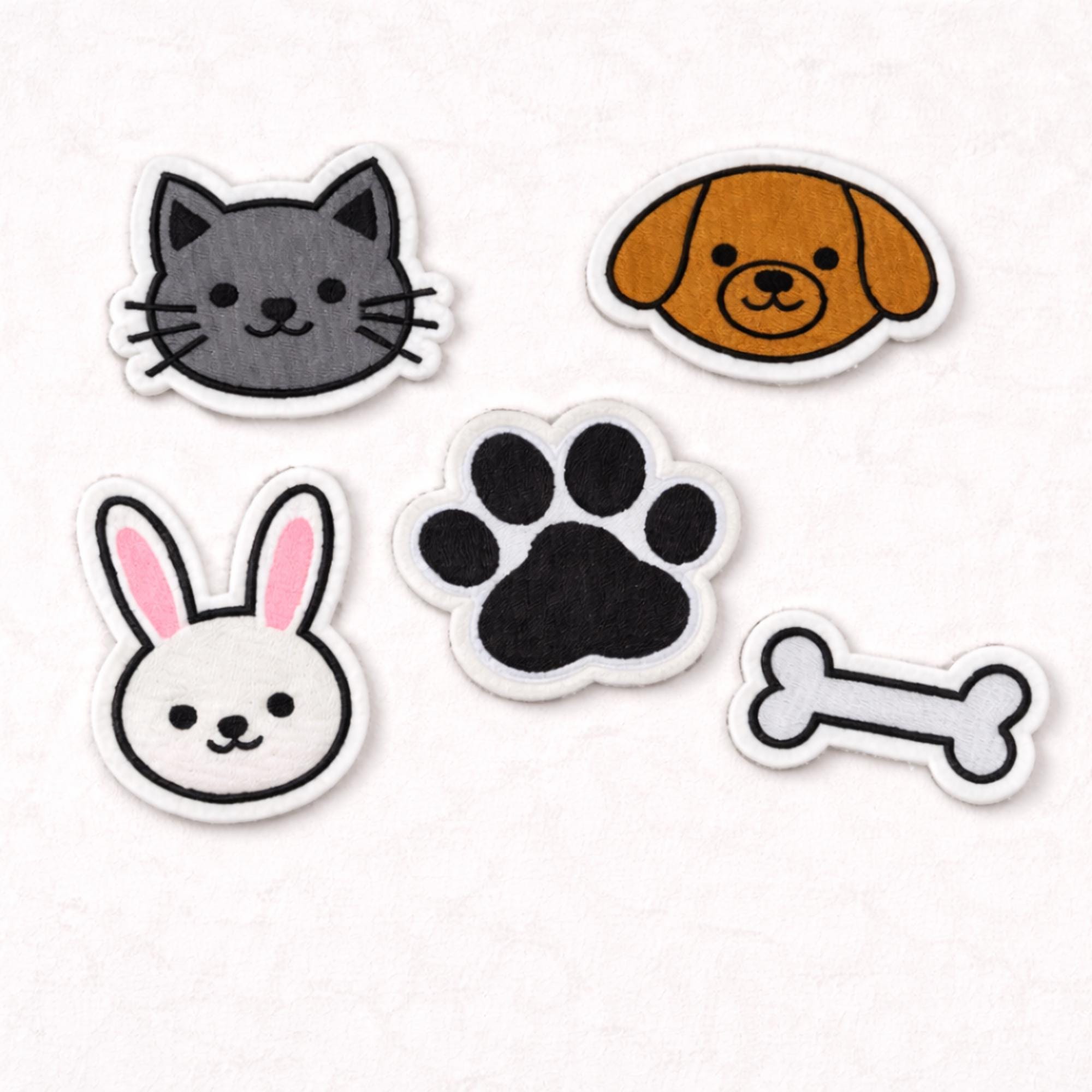 Crafted from high-quality embroidered fabric, these whimsical patches are easy to apply—simply iron on or sew for a durable finish. The set includes charming designs such as a cute gray cat, a friendly brown dog, a cheerful bear, a sweet bunny, a paw print, and a playful bone, adding personality and charm to any item. Their vibrant embroidery ensures they stand out and last through regular wear.